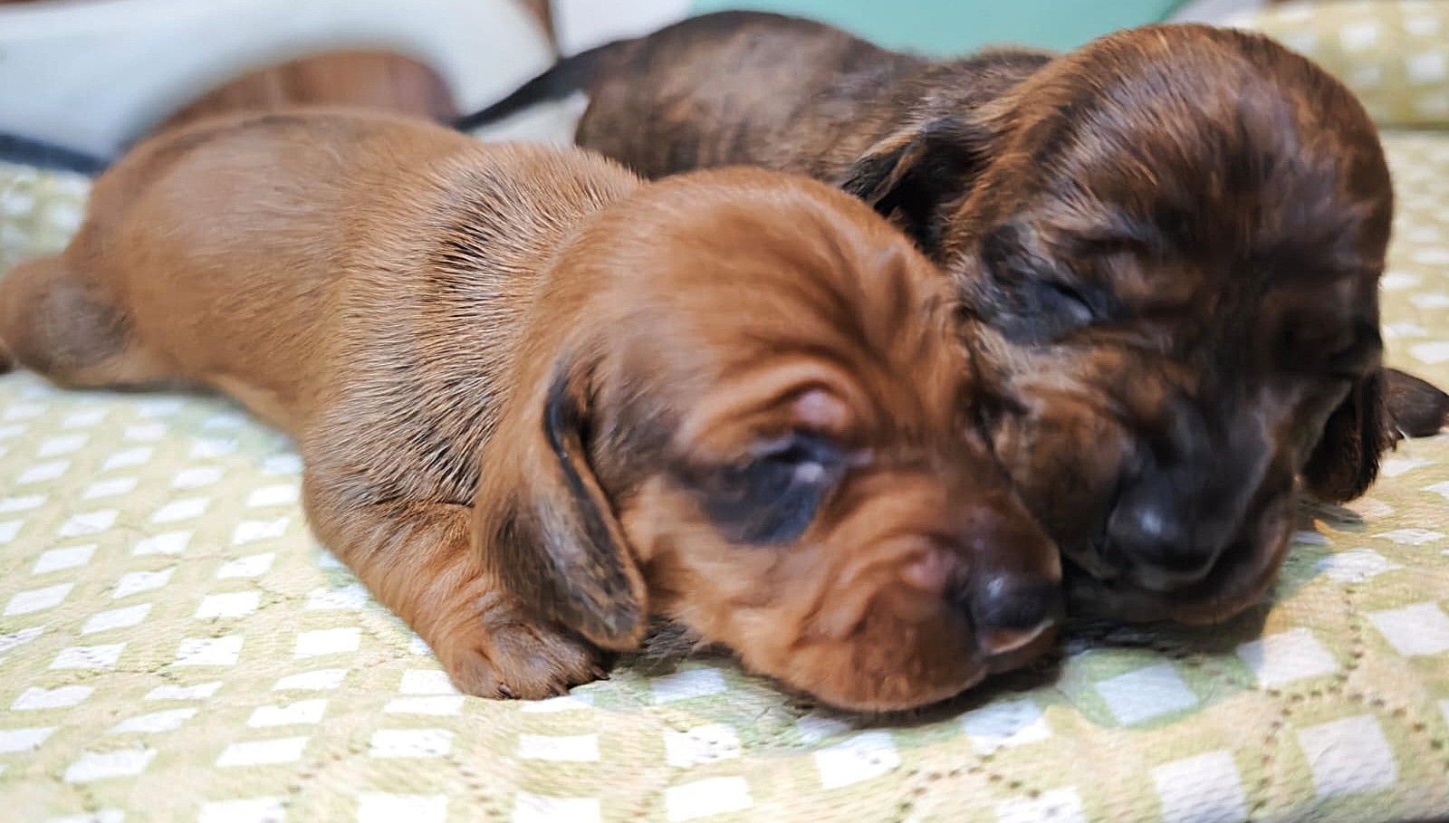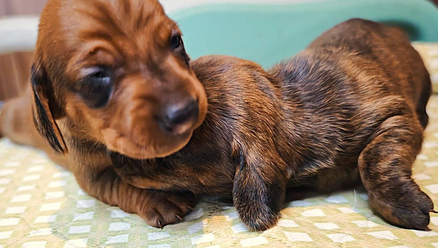 Oh Mann, wie die Zeit rennt. Das war sozusagen der erste Bild Kontakt von Louisa, geschickt von der Züchterin, und als ich auf gar keinen Fall einen zweiten Dackel haben wollte…
